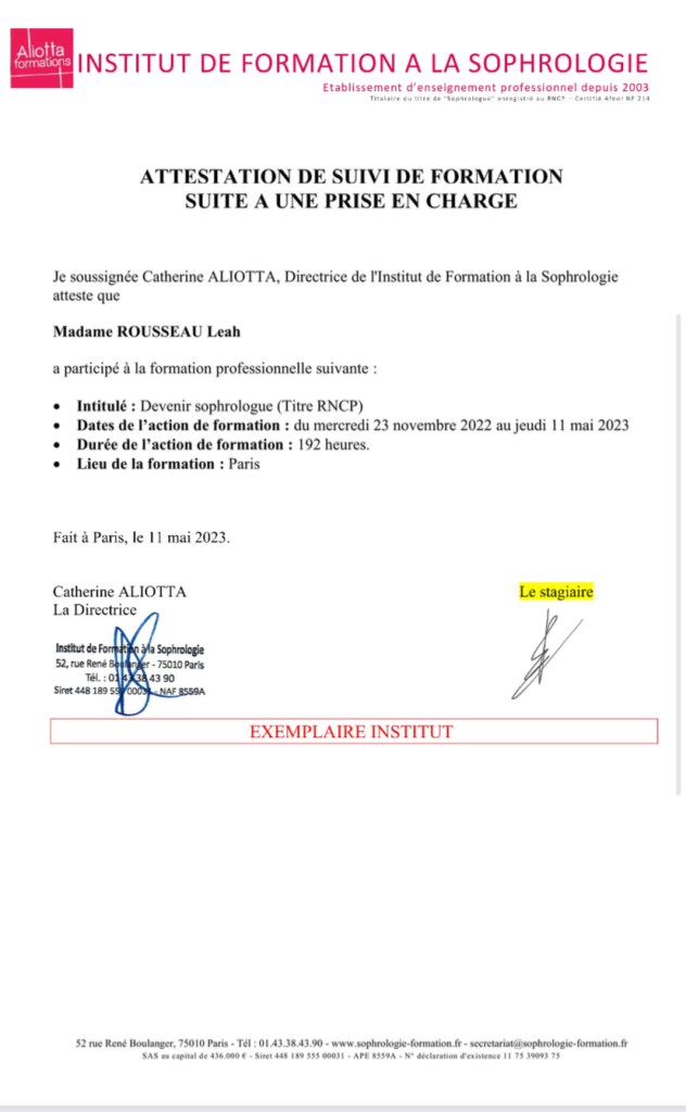 J’ai d’abord commencé par une première formation pour m’apprendre les bases de la sophrologie.